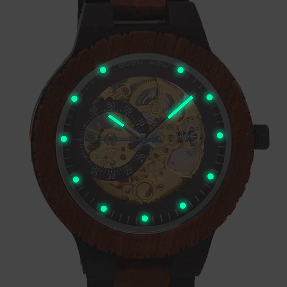 Style: Seeing the visible movement of the watch is seen as a connection to the beat of a heart to the rhythm of life. Complete with dial luminosity, premium handcrafted wood design and lightweight.
