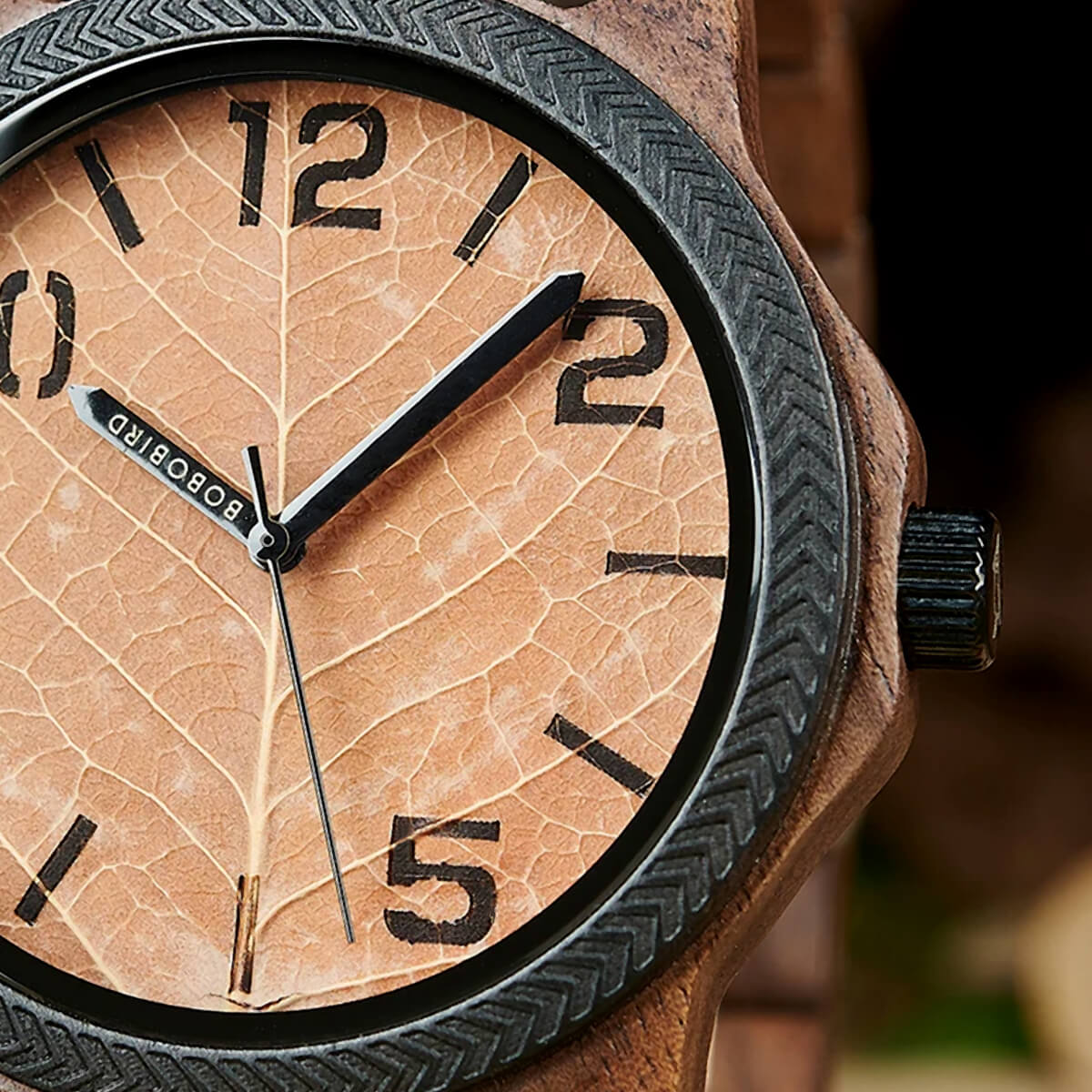 Bobo Bird Real Brown Leaf Watch with Modern Numeric Display