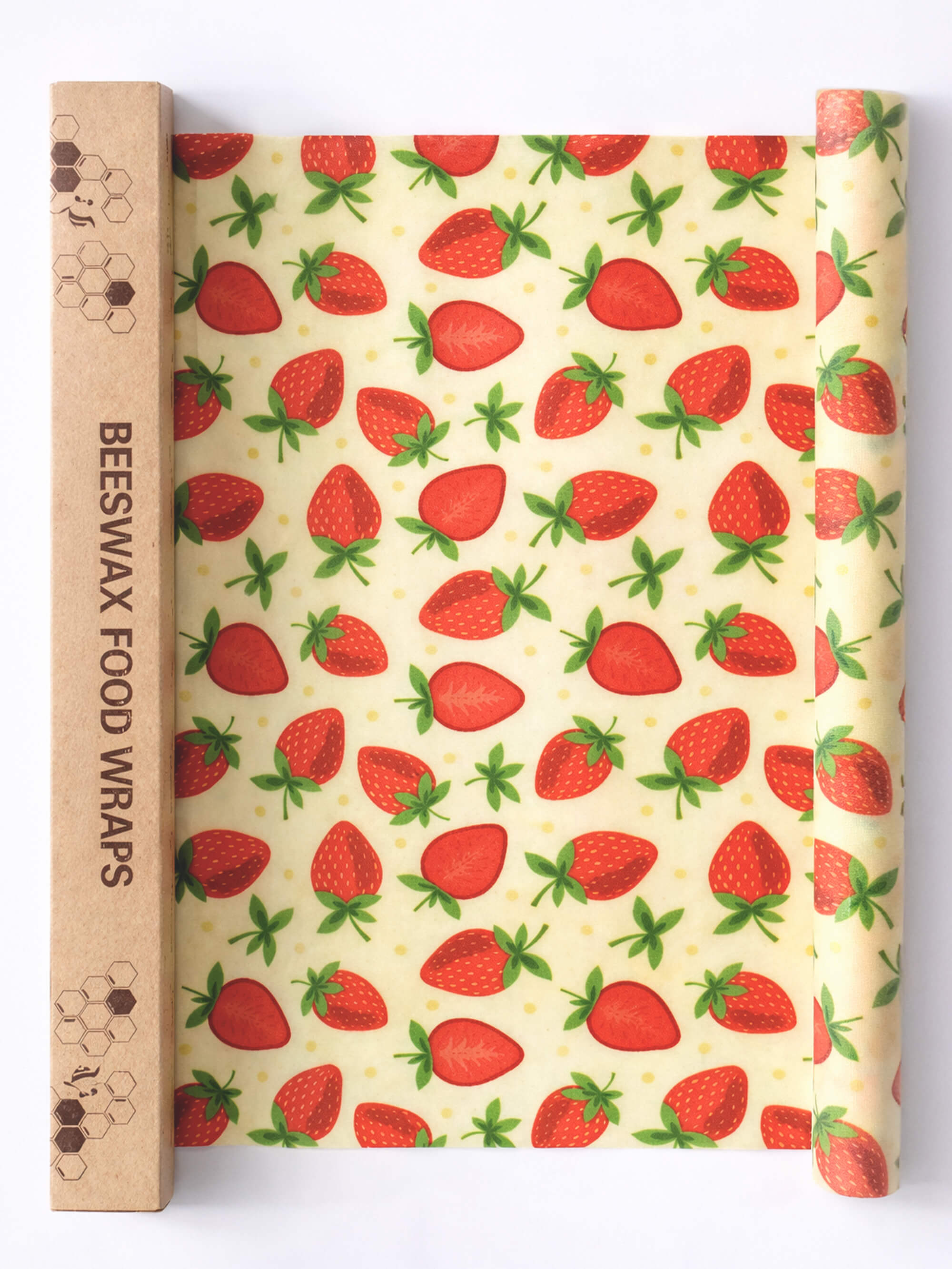 Reusable Beeswax Wrap Roll - Strawberry (3 Pack, Cut-to-Size 100cm x 33cm)